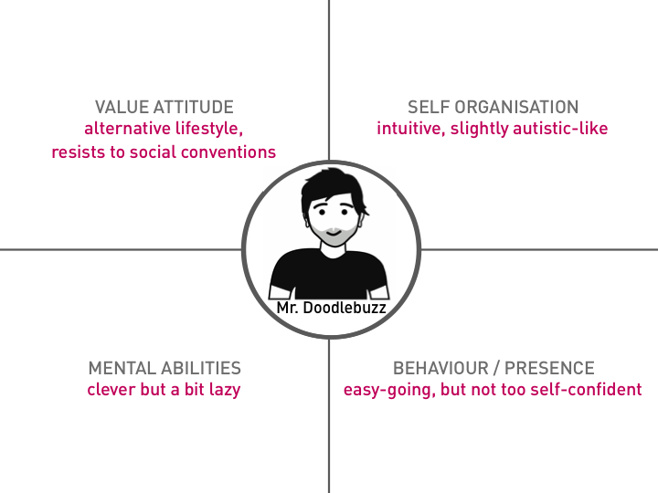 Fig. 11: Character profile of Mr. Doodlebuzz as representative of a website (c) Andrea Krajewski