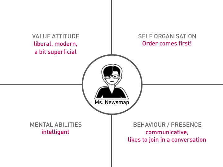 Let’s get to know another person. This lady is a modern, straightforward woman, who loves order in her life. She is no friend of profound academic discussions. Instead, she invests her intelligence for natural sciences and mathematics. She spots on uncomplicated and easy relationships with people she likes to meet for a chat. Let’s call her Ms. Newsmap.