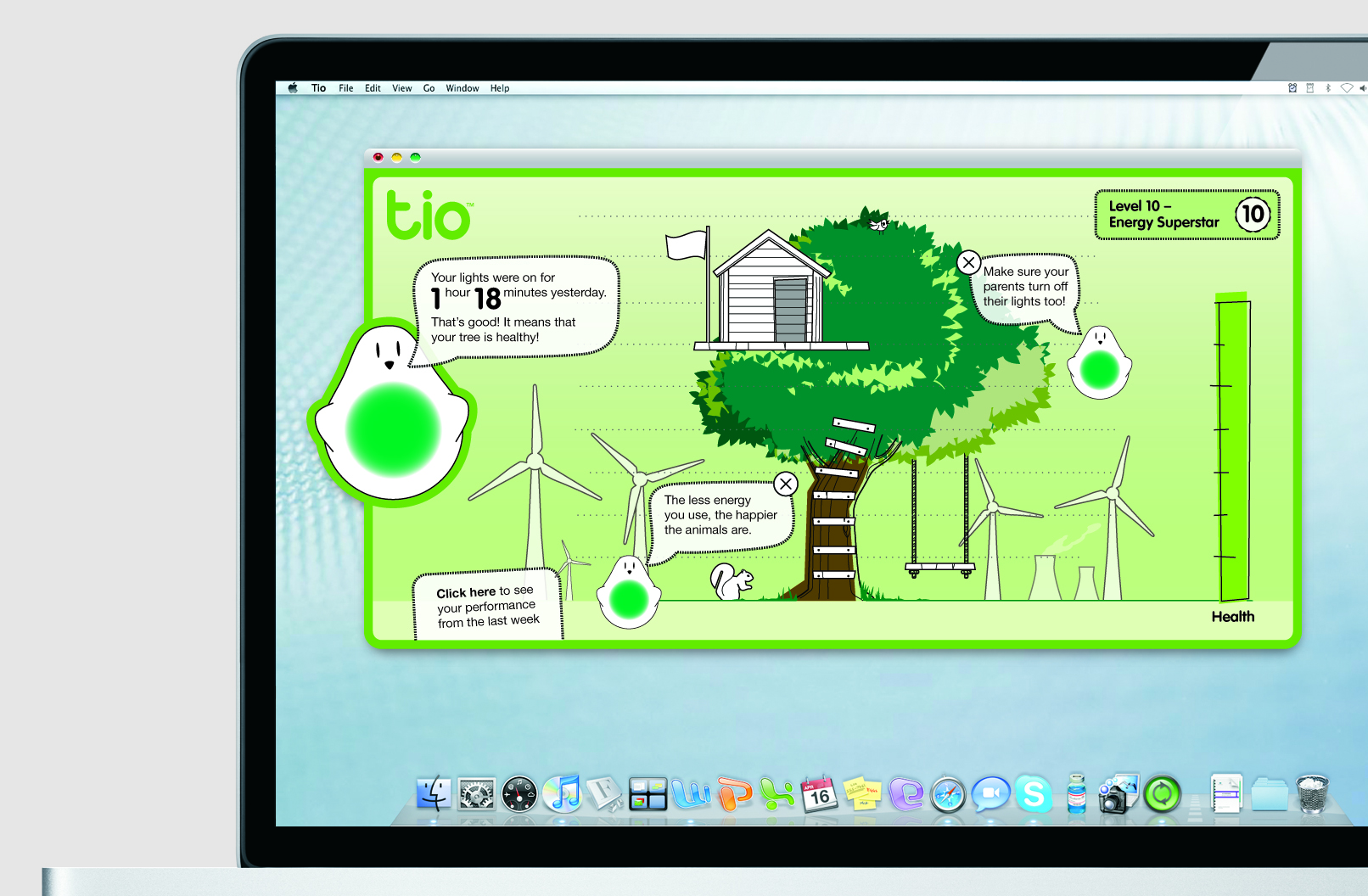 A connected web application allows the child to track their lighting-use performance over time. Tio relates lighting usage to topics that are meaningful to children; how energy affects trees, animals and the local environment. This not only makes energy consumption more understandable to the child but also shows the effect saving energy can have on their life. This engages children to make a personal contribution to reducing energy consumption.